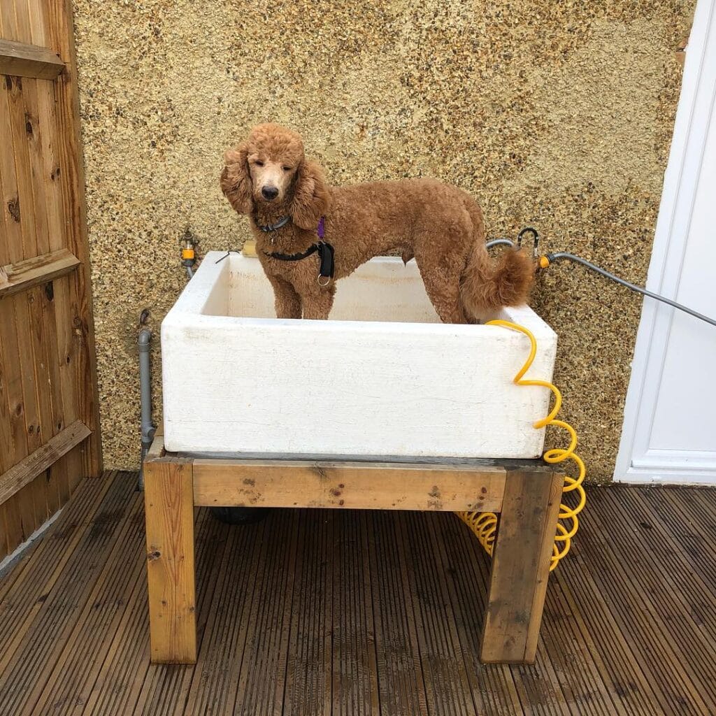 Bath time with a big dog is a lot. You’re soaked, he’s running laps around the bathroom, and your back hurts from hunching over the tub. Last summer I helped my cousin set up a little outdoor wash area for her lab, and she literally texted me the next day like “why didn’t we do this sooner.”