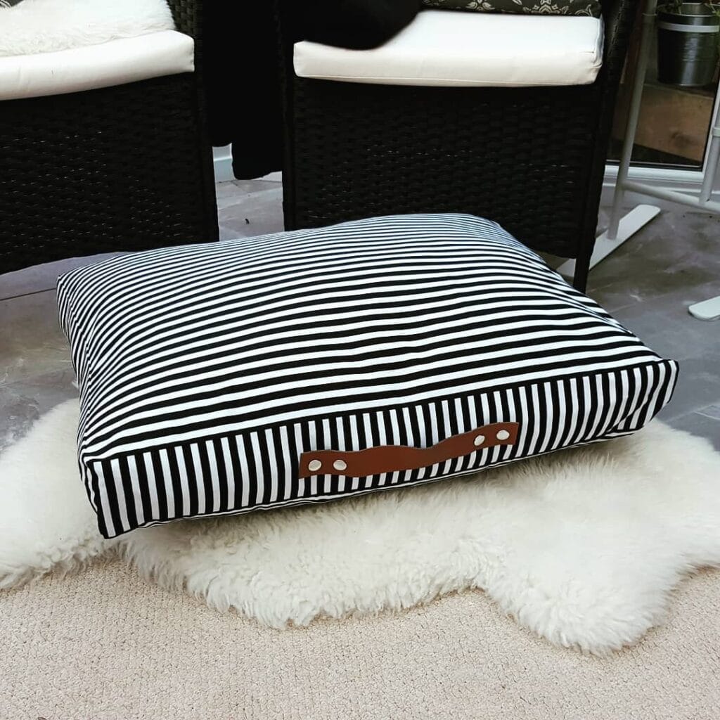 #10: DIY Black and White Striped Dog Bed Pillow with a Leather Handle