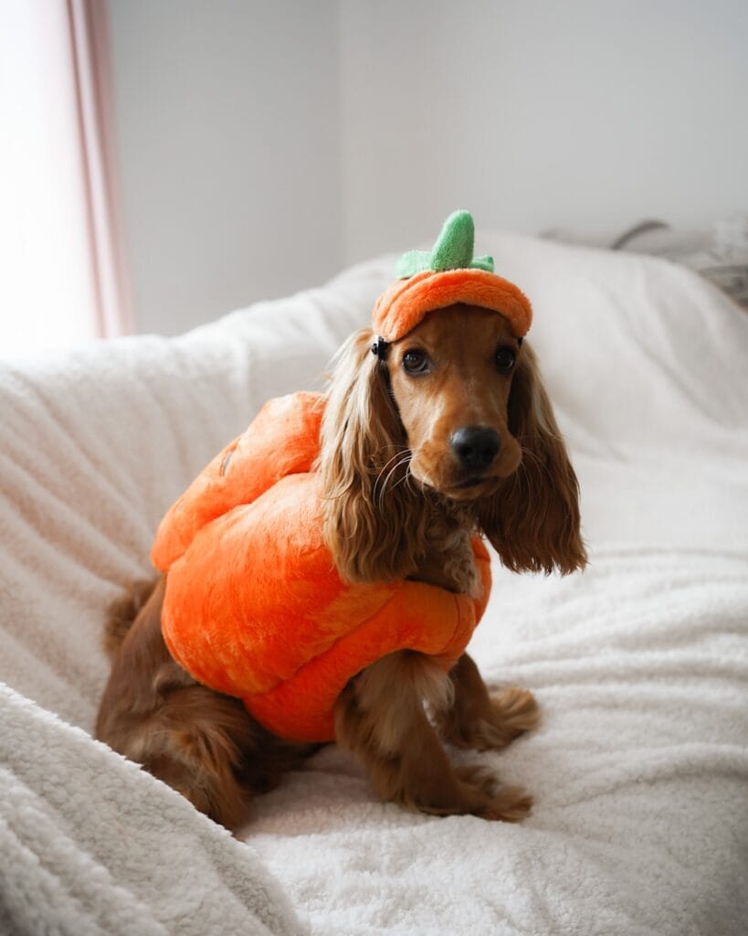 #4: DIY Cocker Spaniel Pumpkin Costume (The Cutest Halloween Look Ever)