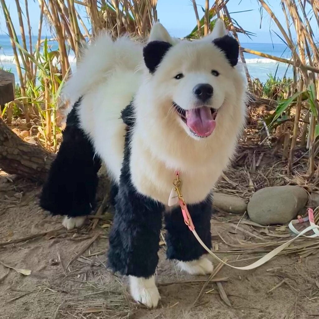 I saw this look on a Samoyed account and literally sent it to three people in a row. The black-and-white panda grooming style is having a serious moment, and honestly, it works on fluffy dogs like yours too.