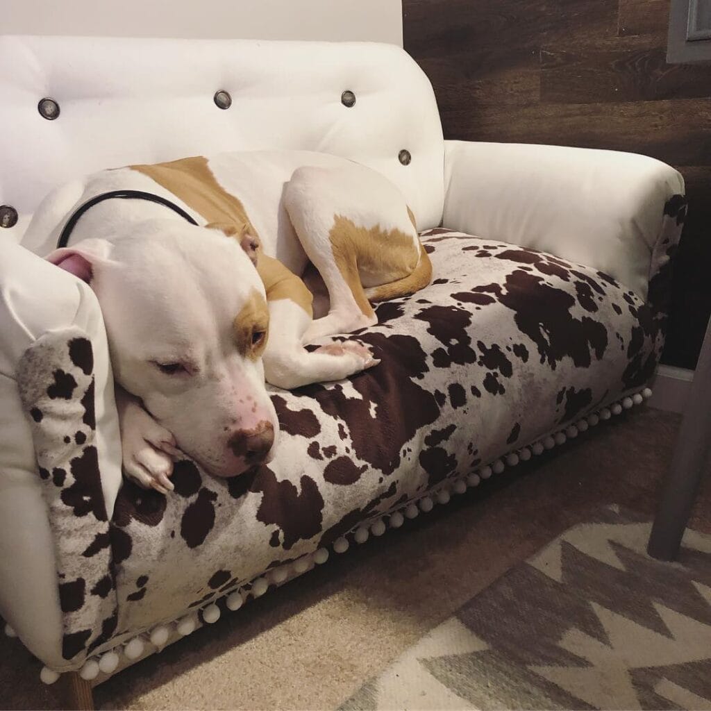 #5: The White Tufted Sofa With Cowhide Cushion (Yes, For Your Dog)