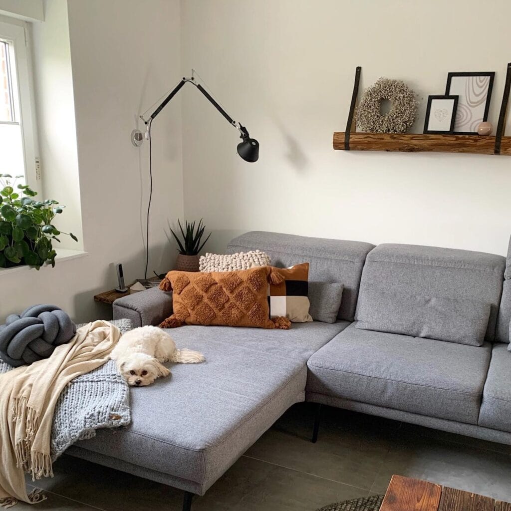 This DIY dog couch is basically a mini version of that gorgeous grey sectional in the photo — and your pup will claim it before you even finish building it.