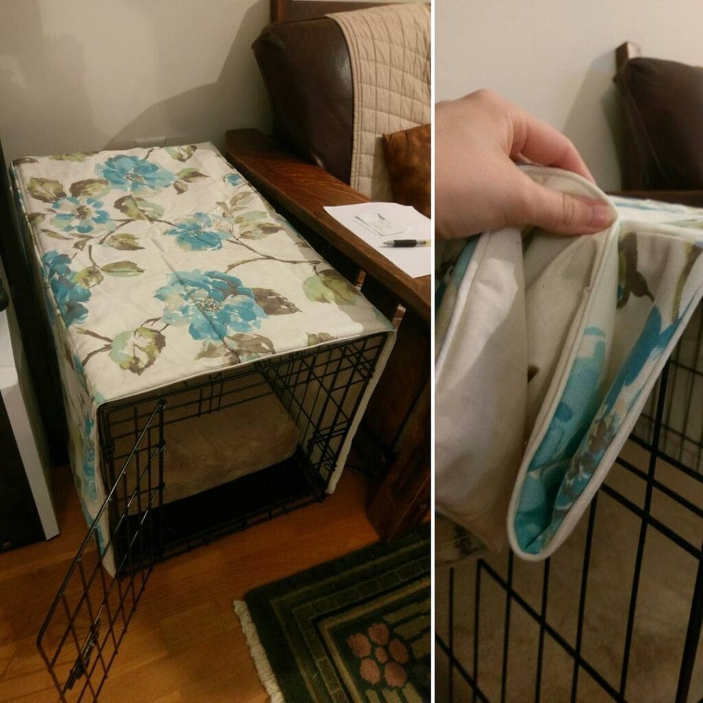 7. Final Touch: Slip your newly crafted cover over the crate and adjust it for that perfect fit. Tuck in any loose edges, and voila—your dog now has a stylish, durable hideaway.