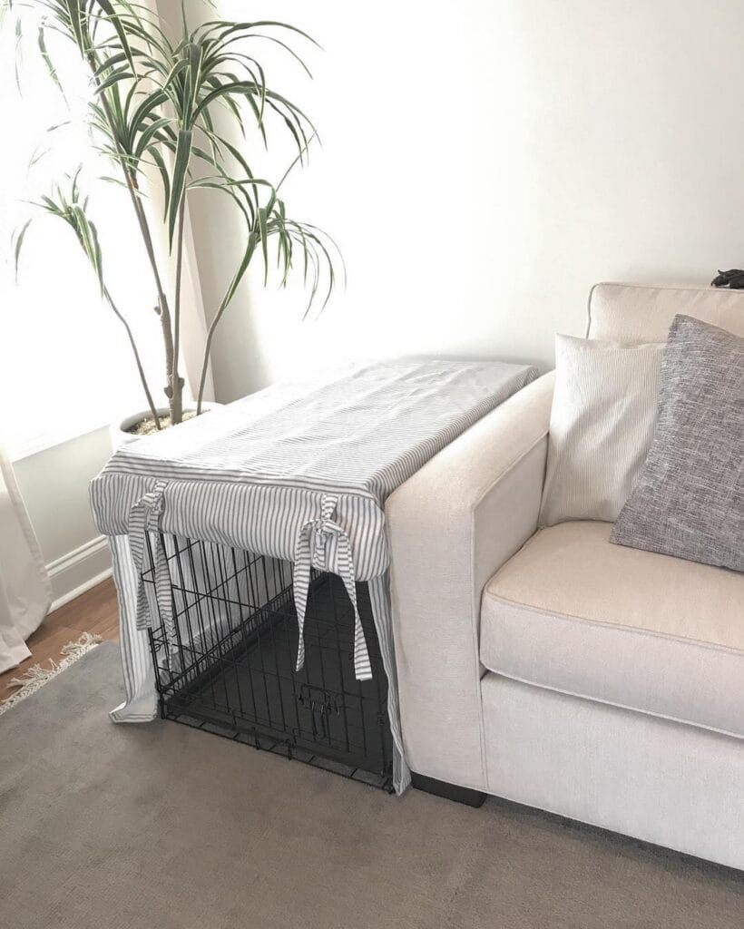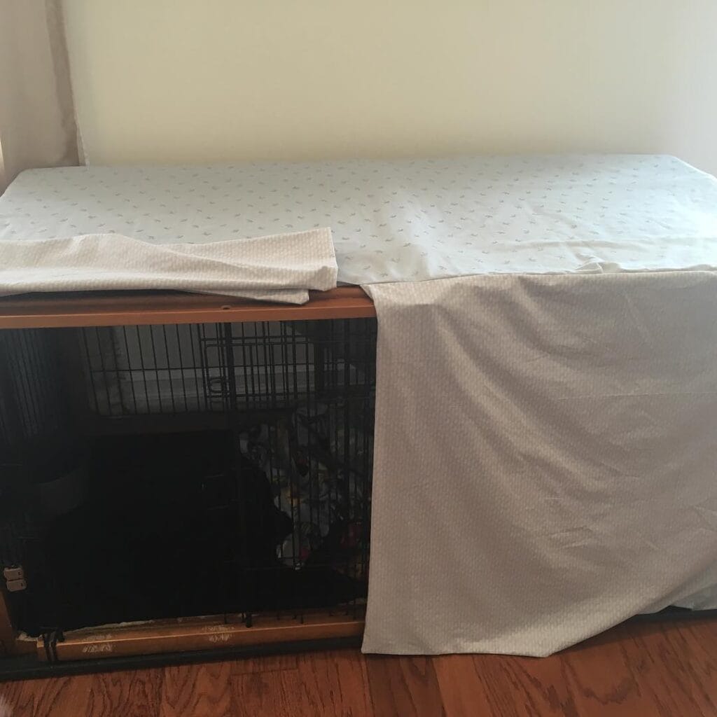 7. Finalize Your Cover: Drape your lovely new cover over the crate, adjusting it for a snug fit. Tucking the fabric under the crate will help keep it looking neat, and your dog will surely appreciate the cozy vibes.