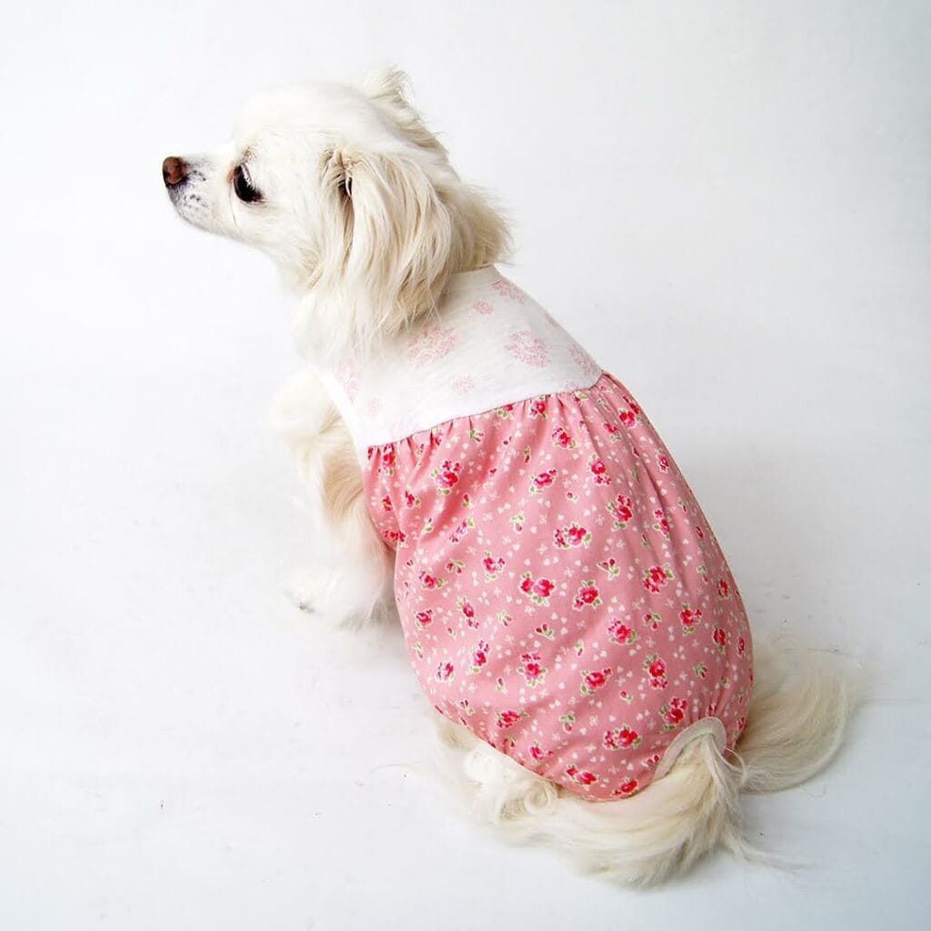 #2: Floral Dog Diaper Dress — The Cutest DIY Fix for Heat Cycles and Post-Surgery Recovery