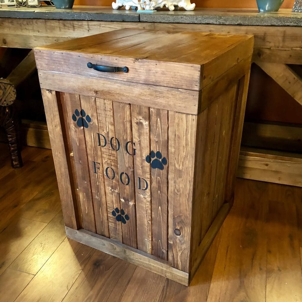 #8: Rustic Wooden Dog Food Storage Box With a Lift-Top Lid
