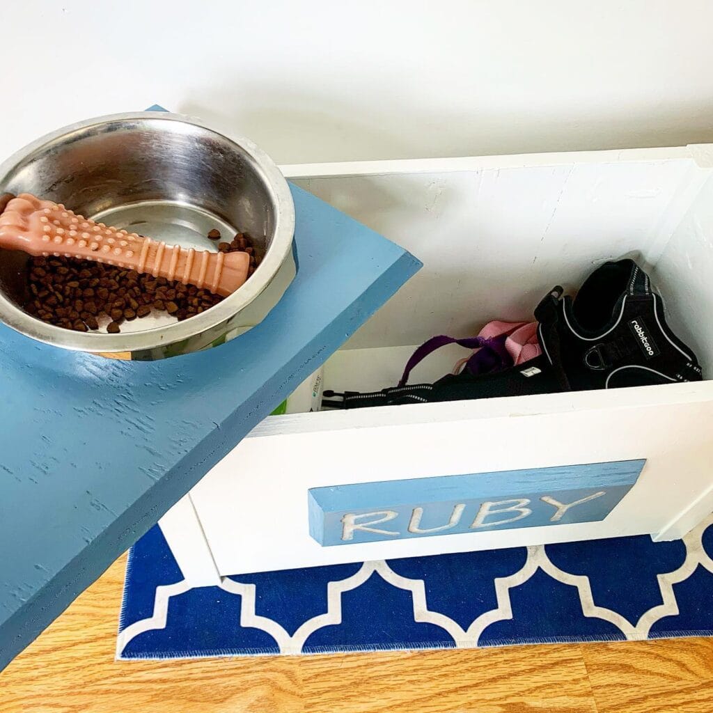 #9: DIY Raised Dog Feeding Station With Built-In Storage Box