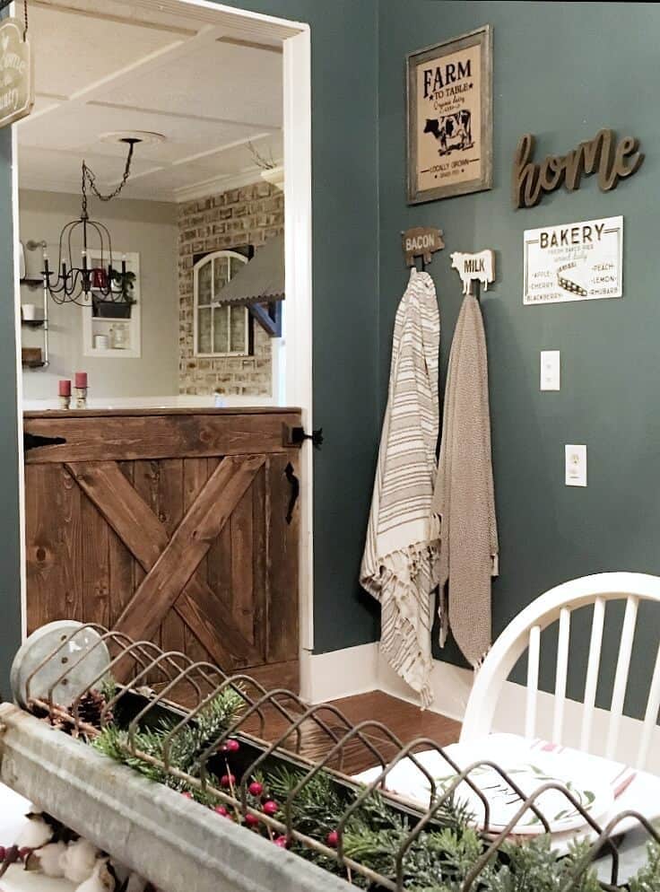 Cut two 1×6 pine boards to your doorway width (standard 36 inches works for most kitchens). Build the classic X-brace pattern you see here using wood glue and 2-inch screws, then sand everything smooth so curious noses don’t get splinters. Stain it with Minwax Dark Walnut to match your existing wood tones. The whole build takes 2 hours including drying time.