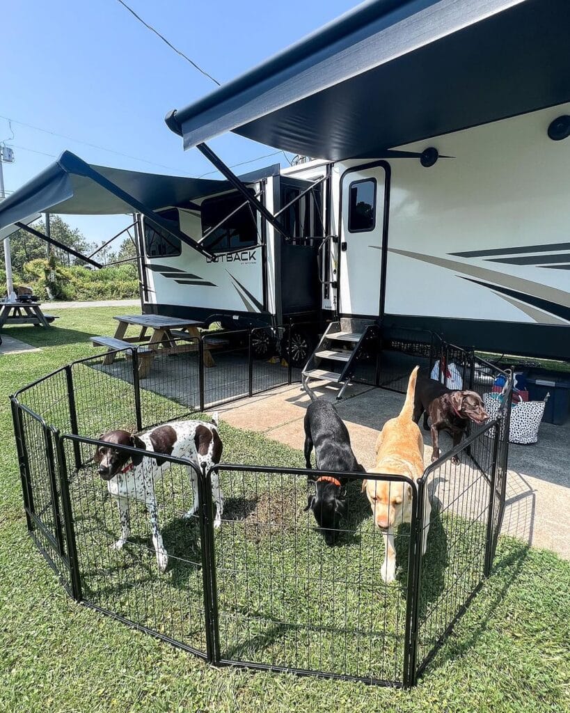 Here’s the trick: position the pen directly beside your RV door or back patio so your dog feels close to you. Dogs settle faster when they can see their person.