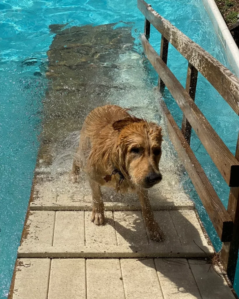 Okay, so you know that moment when your girl finally gets out of the pool and immediately shakes herself dry — right onto your freshly painted deck? Yeah. And then she’s slipping around trying to climb out because the pool edge is just… not made for dogs. My friend went through this with her golden, Maple, last summer. Maple kept scratching up the pool liner trying to get out. It was chaos.