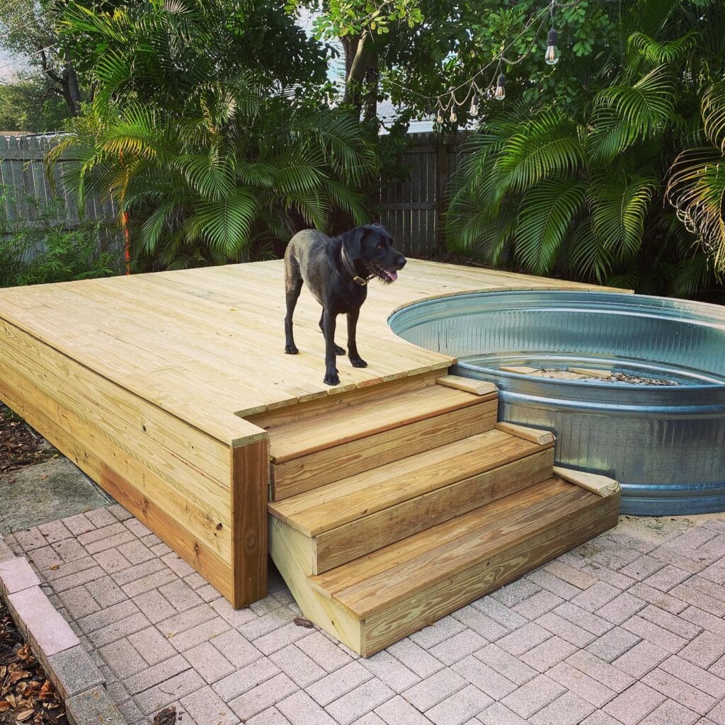 #8: Stock Tank Pool With a Built-In Wooden Deck (The Backyard Upgrade Your Dog Deserves)
