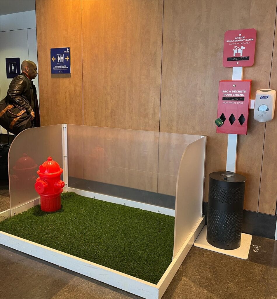 I saw this at an airport and lost it. An actual dog potty station, indoors, with fake grass and a little red fire hydrant. It looked so clean and intentional, not like a sad pee pad shoved in a corner.