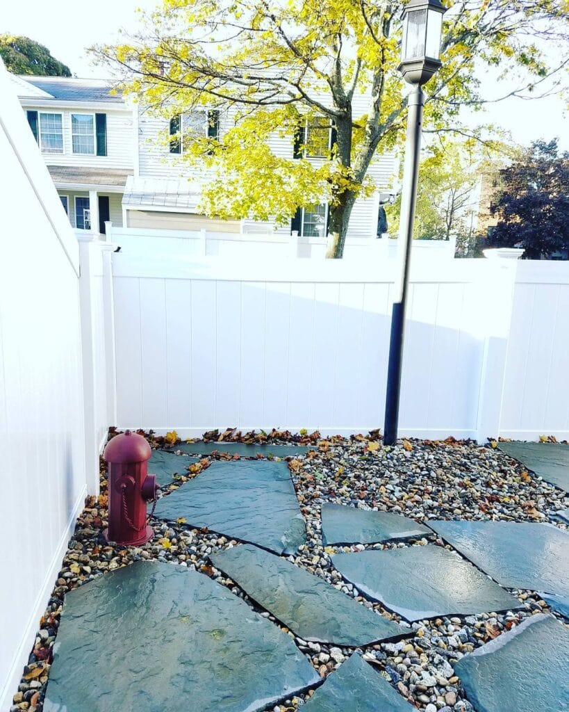 #5: The Fenced Flagstone + Gravel Dog Potty Yard (With a Lamp Post Your Neighbors Will Actually Compliment)