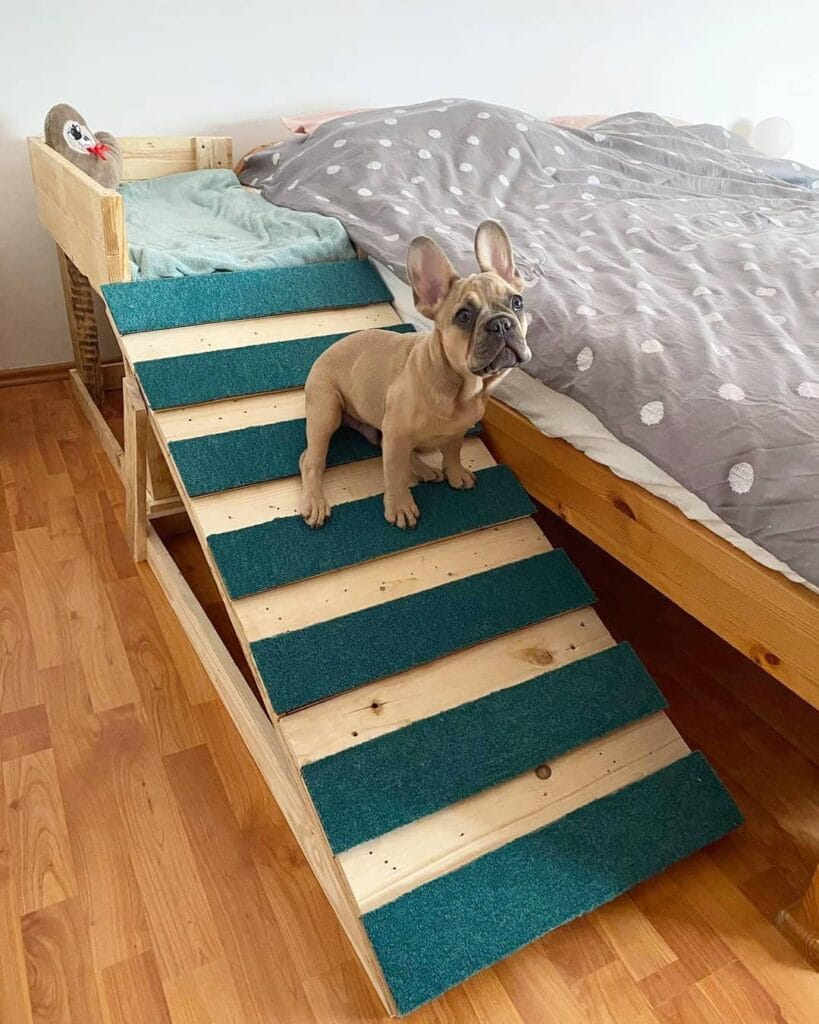 #2: DIY Dachshund Ramp With a Cozy Carpet Top (That Actually Matches Your Bedroom!)