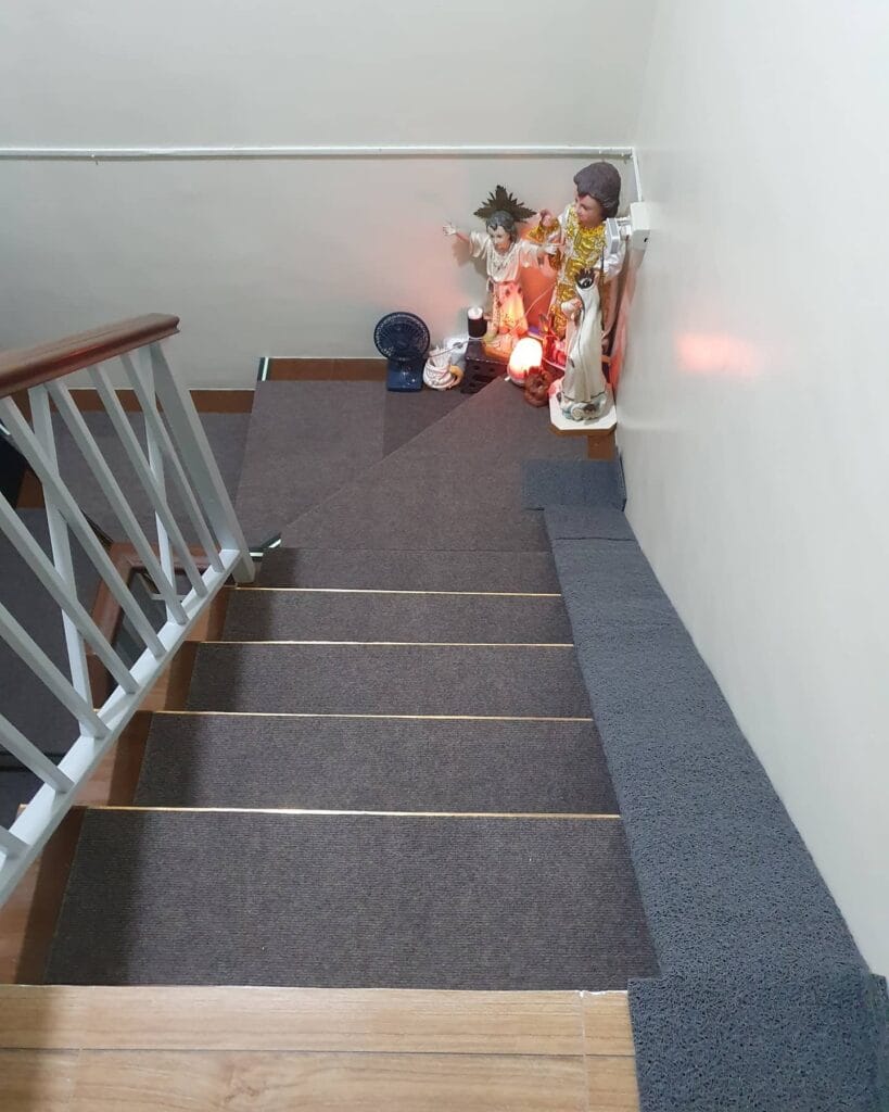 The carpet-over-wood combo means paws grip instead of slide, joints stay protected, and your staircase actually looks Pinterest-worthy doing it.