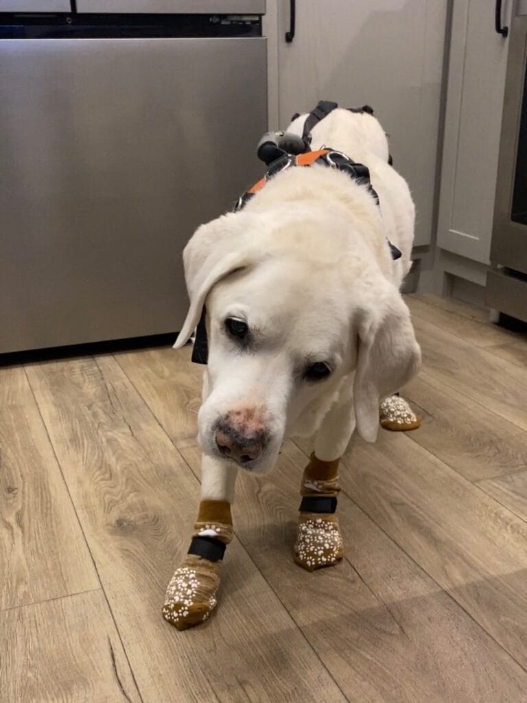 Pro tip: Your dog will do a funny high-step walk for the first 5 minutes. Let them adjust indoors before heading outside.