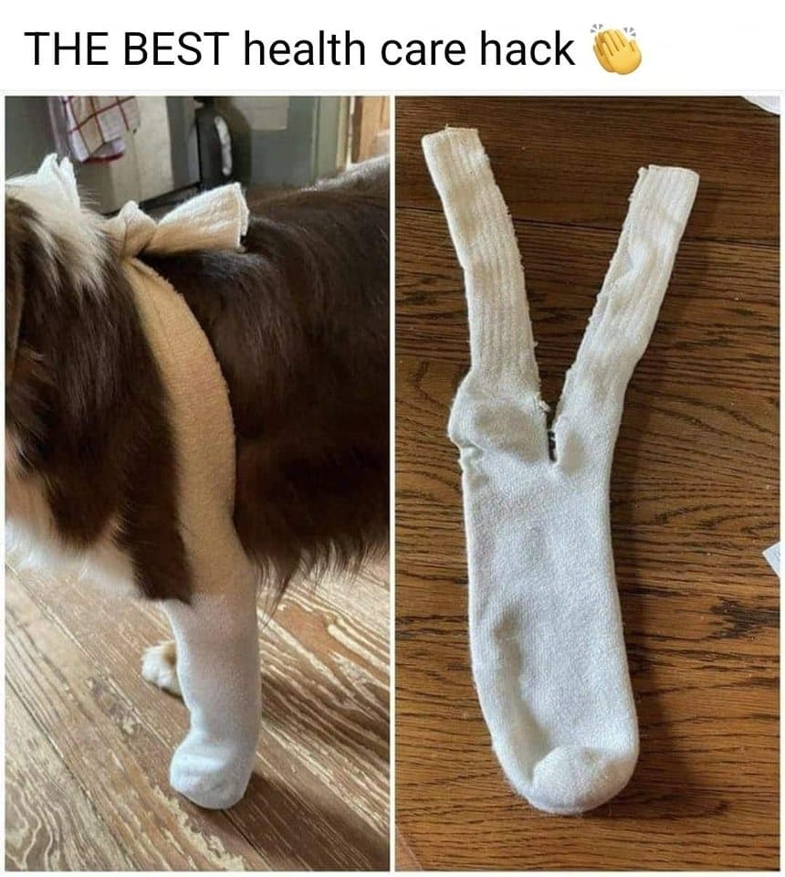 Your dog’s lifting each paw like he’s walking on hot coals across your July patio. Cut the foot off an old tube sock, fold the ribbed top down twice, and you’ve got instant paw protection using what’s already in your drawer.