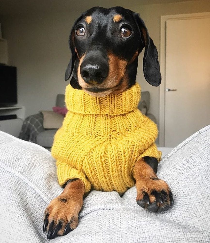 Your yellow cable-knit sweater shrank in the dryer last winter. Now its sleeve can keep your dachshund warm while matching your mustard throw pillows perfectly.