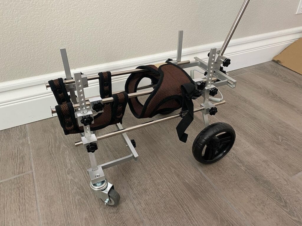 #7: DIY Dog Rear Wheelchair With Chrome Frame and Harness Support