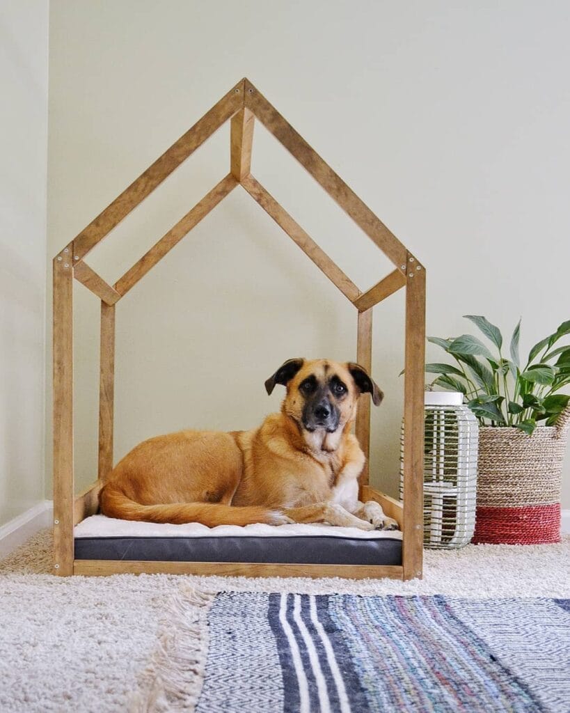 For dogs that sleep indoors but love having a defined personal space, a minimalist frame house can create a calm and cozy sleeping zone.