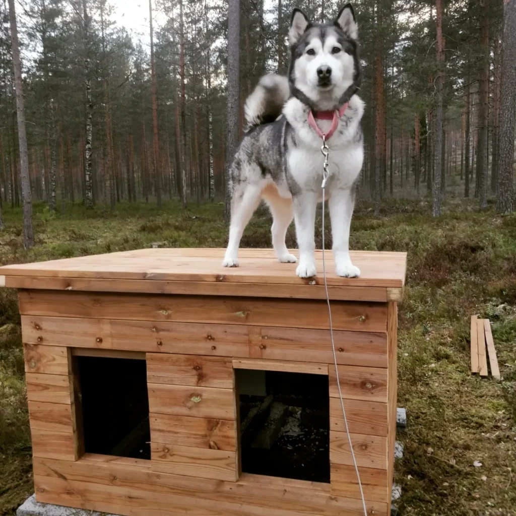 This double-entry cedar dog house from @kuunlaulunkennel is exactly what I’ve been obsessing over. Two openings mean better airflow in summer and an easy escape route if your dog gets spooked. The flat roof doubles as a lookout platform — and clearly, dogs approve.