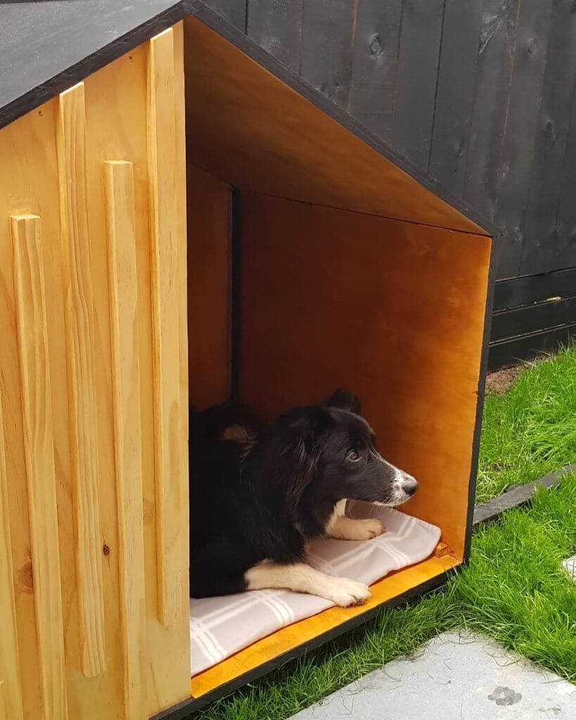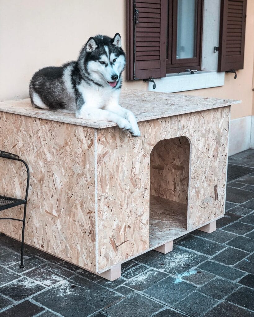 The flat top isn’t just a design choice — it becomes a natural perch. Huskies and big dogs love elevated surfaces, and your golden will too. OSB is sturdy enough to hold a large dog without any flex.