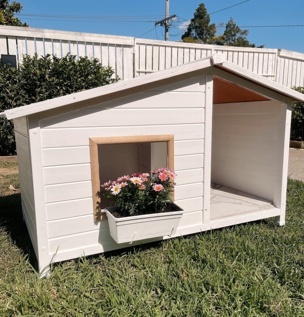 #7: The Pinterest-Perfect White Dog House with a Flower Box Window