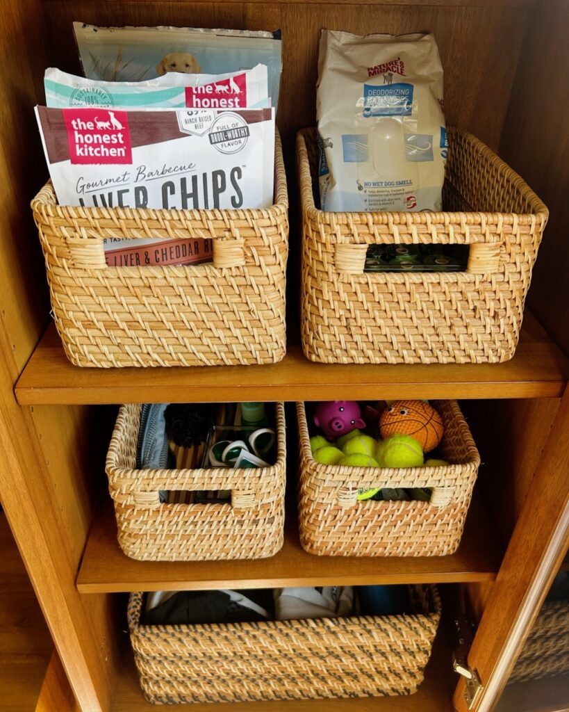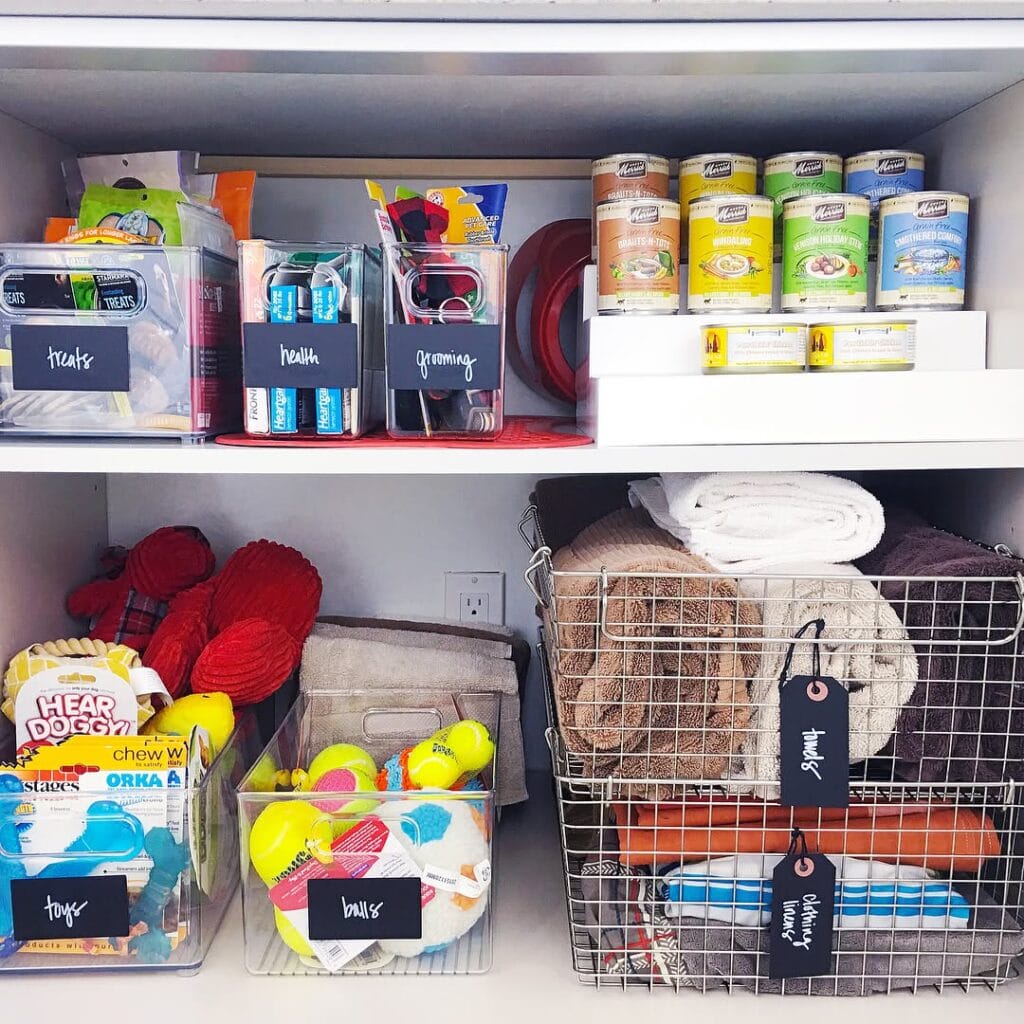 Okay, this is the setup I wish I had when my dog was going through his “destroy every toy in 48 hours” phase. Everything has a home, everything is labeled, and nothing is shoved into a random basket under the bed anymore. Your golden retriever’s stuff deserves this level of organization.