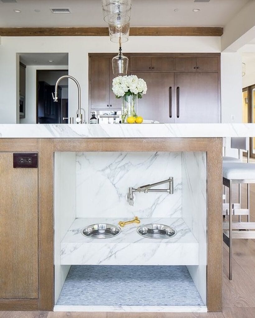 #5: Built-In Marble Dog Station (Kitchen Island Integration, Zero Floor Space Used)