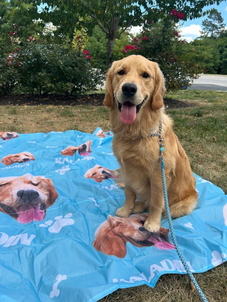 You know that moment when your golden flops onto the couch and just owns the whole thing? This is the energy. This bright sky-blue blanket is printed wall-to-wall with close-up photos of Kaladin’s golden face — tongue out, eyes soft, completely unbothered. It’s custom, it’s hilarious, and honestly? It’s the most “you” gift idea I’ve ever seen for a dog mom.