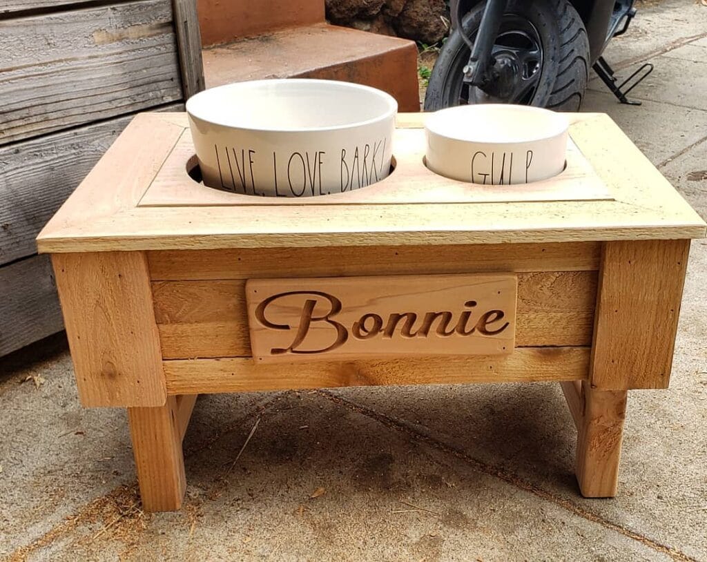 #4: Personalized Raised Dog Feeding Station with Engraved Name Plate