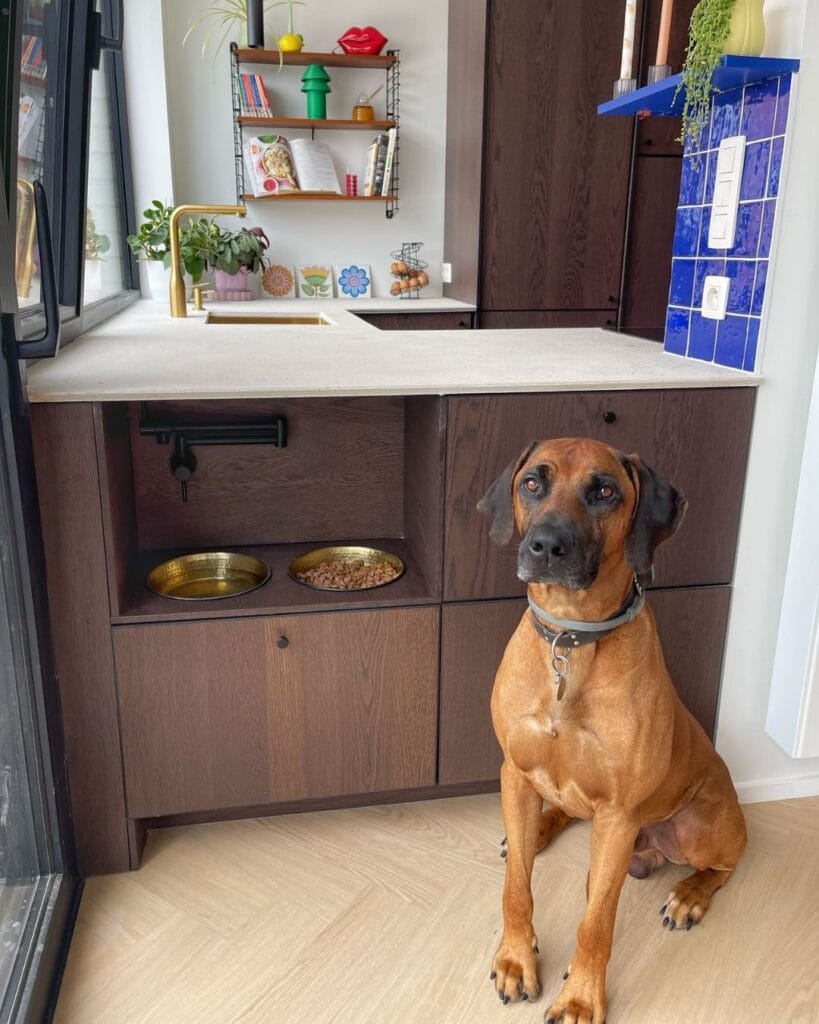 #3: Built-In Cabinet Dog Feeding Station (The One That Makes Your Kitchen Look Like a Pinterest Board)