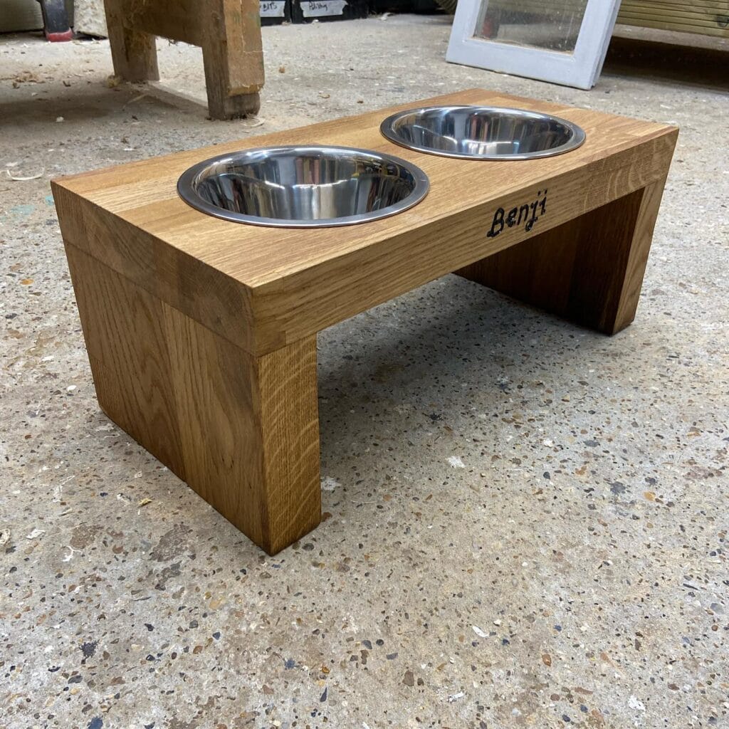#5: Raised Oak Dog Feeding Station (The One Benji Deserves)