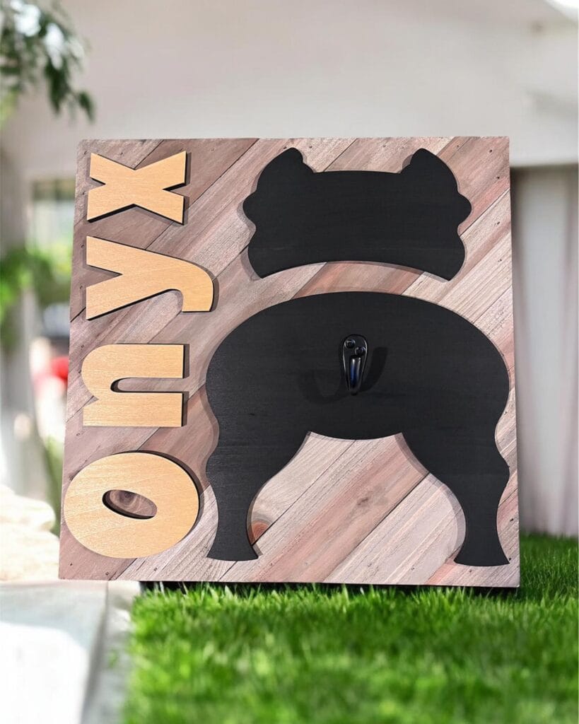#2: Personalized French Bulldog Leash Holder Sign (The “Onyx” Style)