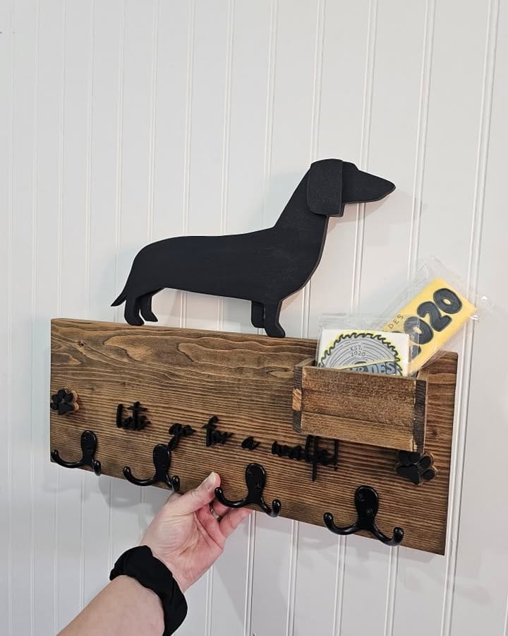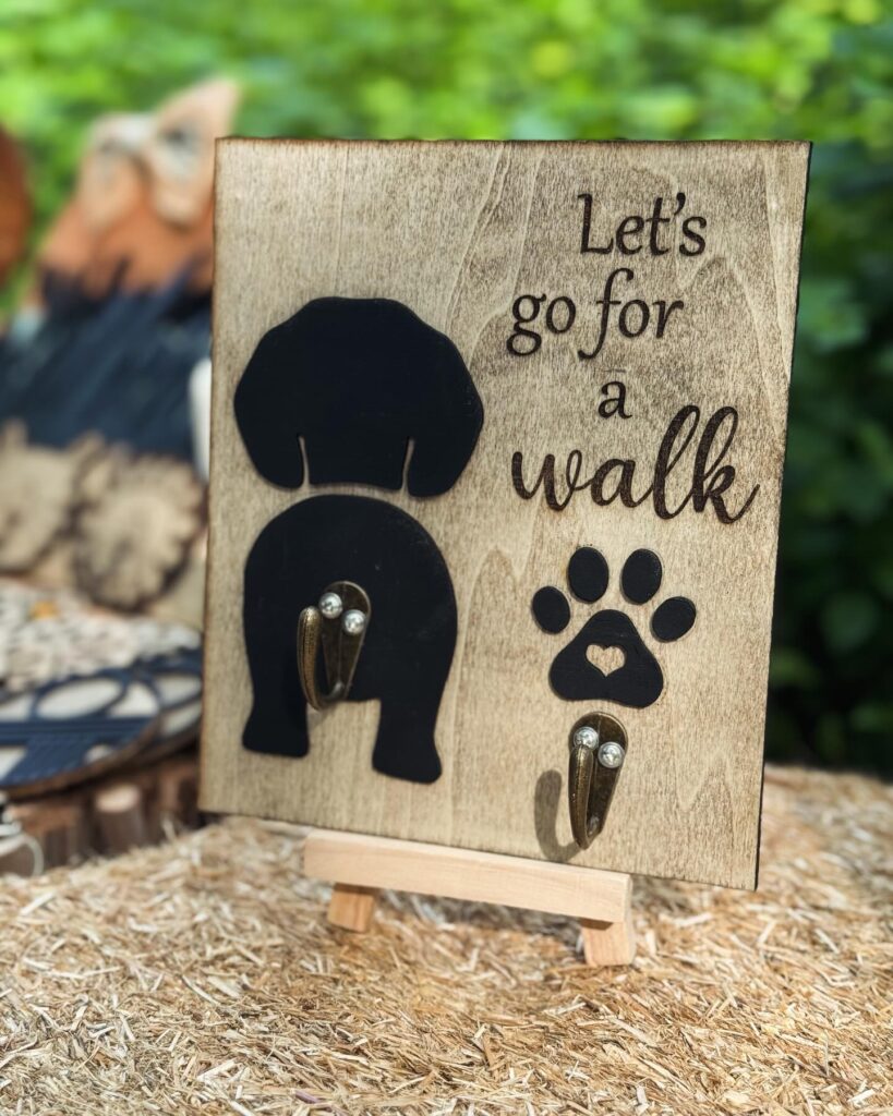 #7: Laser-Engraved “Let’s Go for a Walk” Dog Leash Holder Board