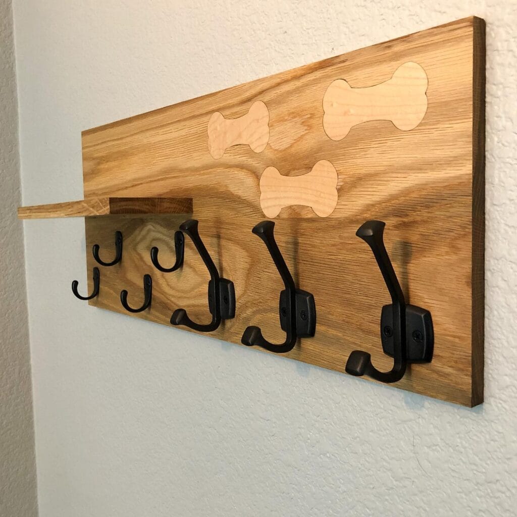 #5: Dog Bone Inlay Leash Rack With a Mini Shelf (The Entryway Upgrade Your Golden Deserves)