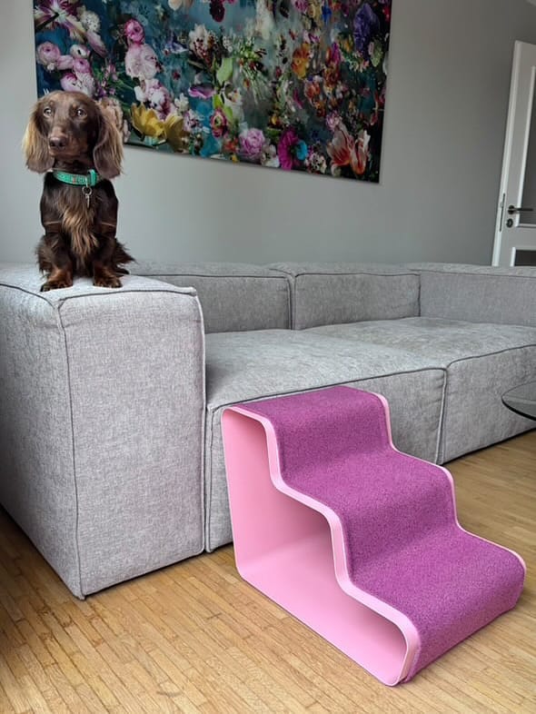 Glue a non-slip felt sheet underneath the base. It keeps the stairs from shifting when your dog hits them at full speed — because she will.