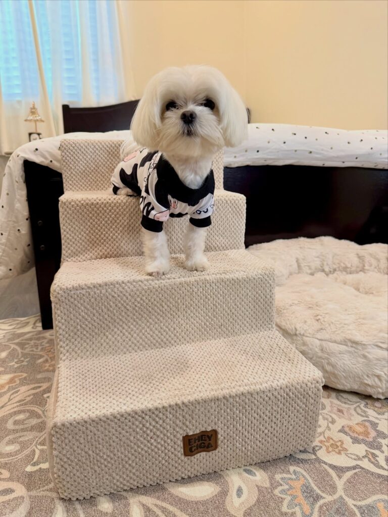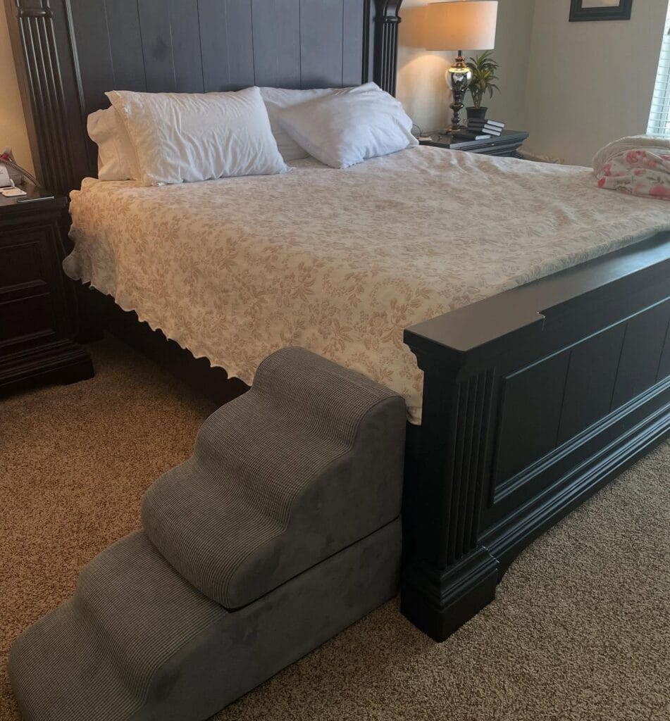 Keep this in mind: a good set of dog steps doesn’t just save your pup’s joints — it saves your sanity and your Pinterest-worthy bedroom setup.