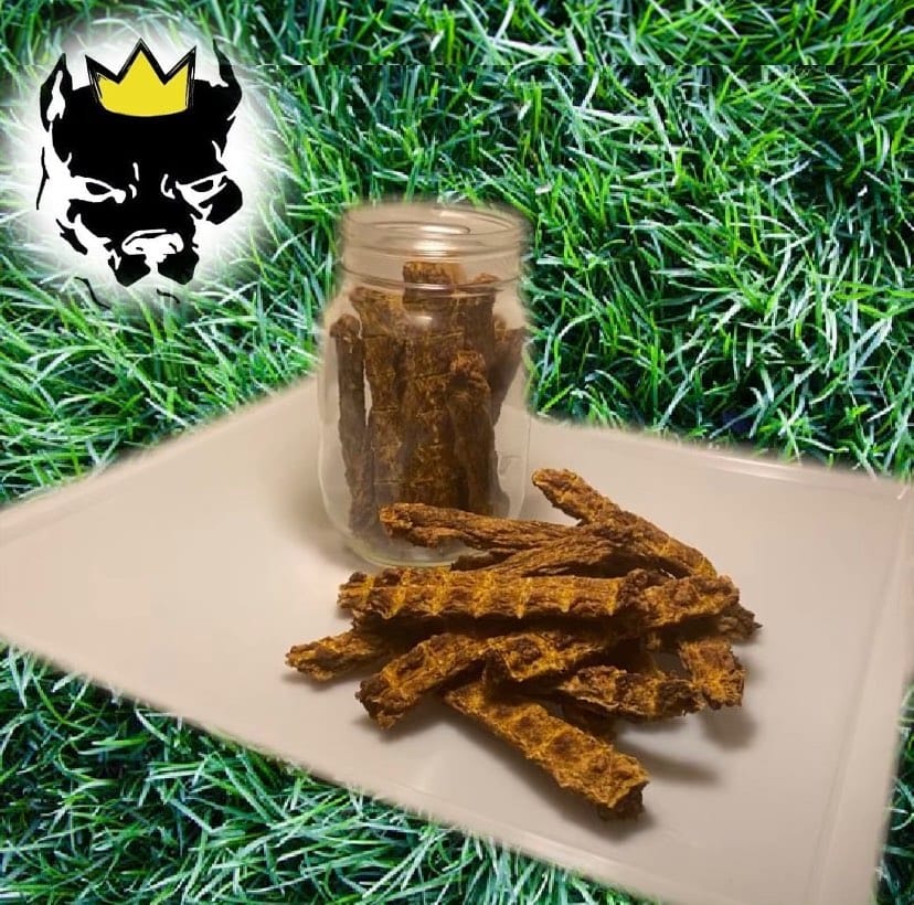 Prep time: 10 minutes. Cook time: 3 hours. Makes: 24 strips for medium to large dogs at roughly $0.18 per treat. Total cost runs about $4.32 for a month’s worth of training rewards.