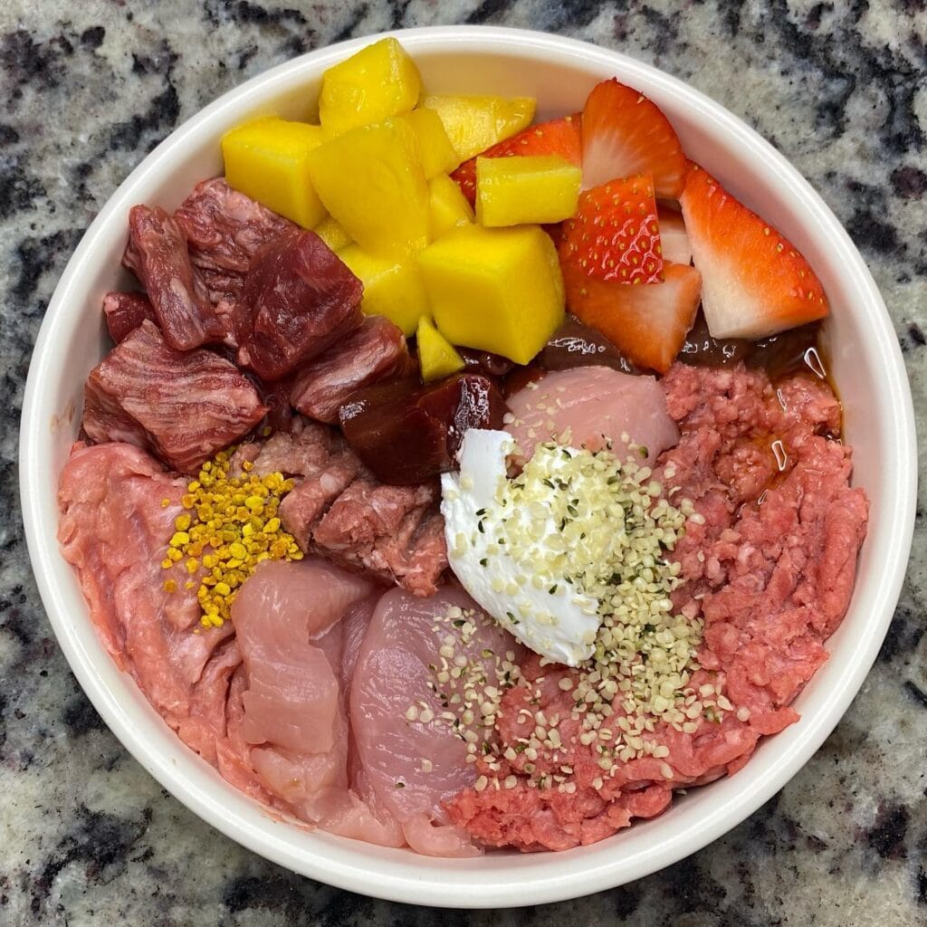 #3: Raw Carnivore Bowl with Mango, Strawberry & Hemp Seeds