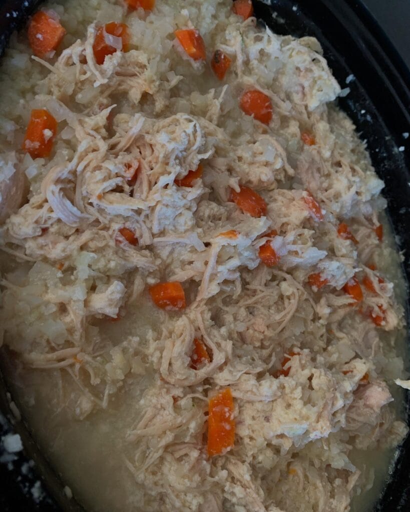 - Cook rice in chicken broth with carrots (18 minutes, covered)