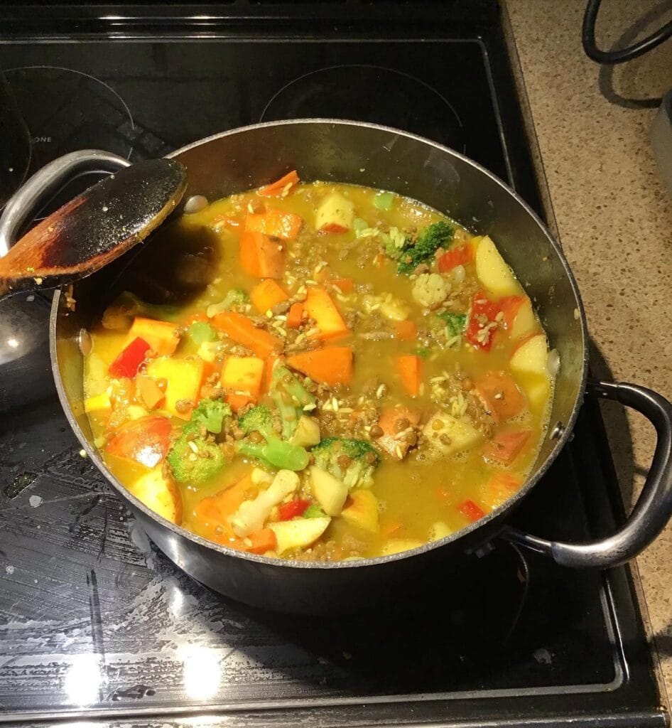- Reduce to simmer, cook 25 minutes until veggies are fork-tender