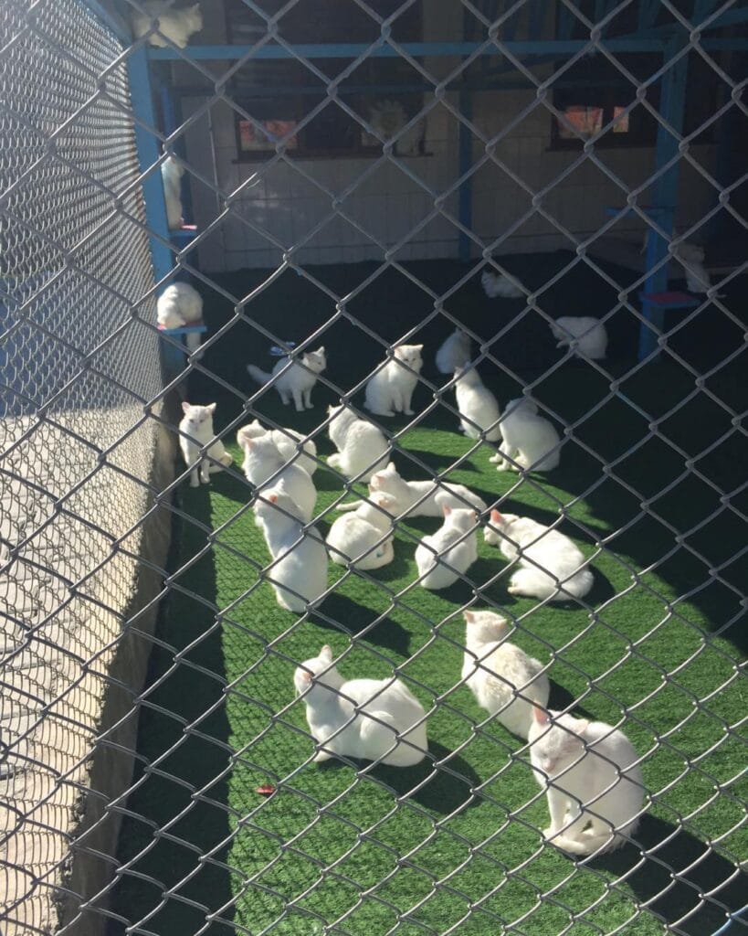 #5: The All-White Cat Colony Enclosure with Artificial Turf and Covered Shelter
