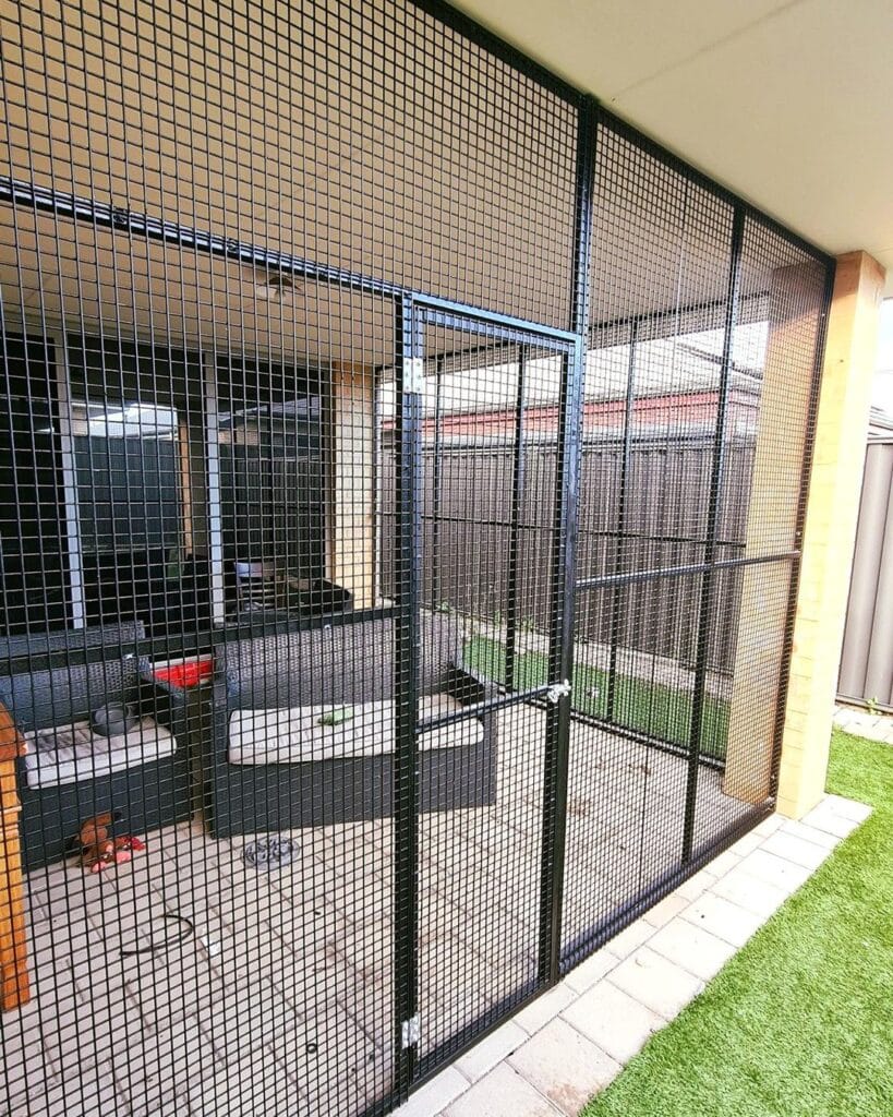 If you’re building this yourself, use 16-gauge galvanized welded wire mesh before spraying it with flat black Rust-Oleum for that clean look. The payoff? Your cat gets full outdoor freedom, and you get zero vet bills from outdoor injuries.