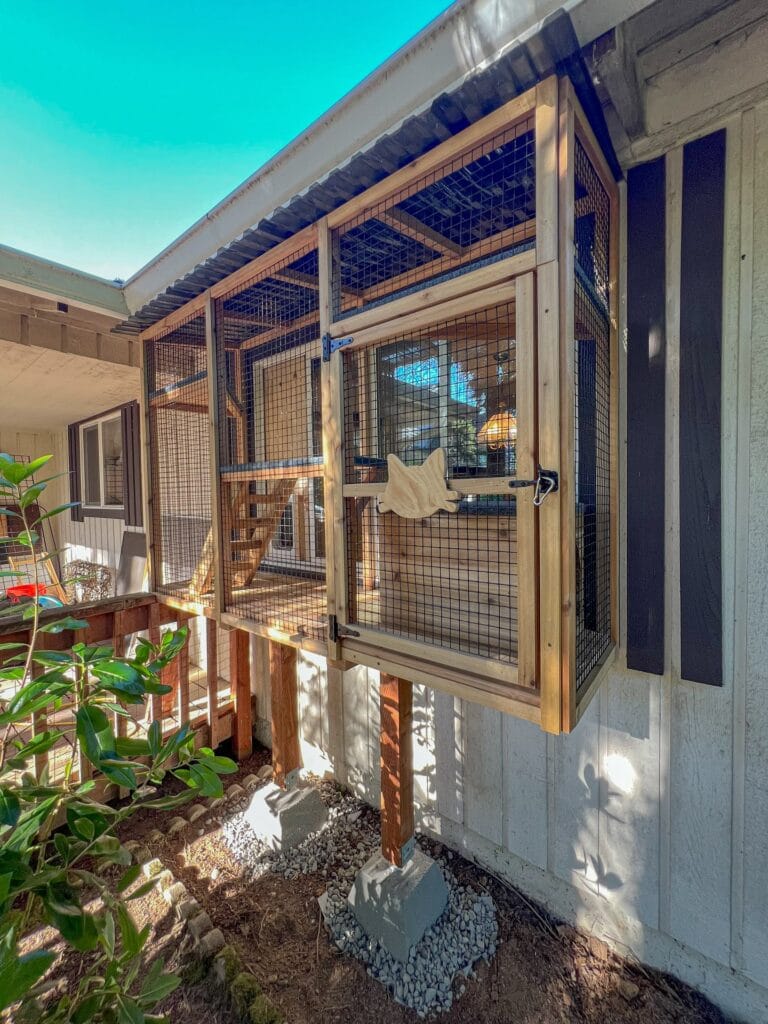 For more ways to let your cat enjoy fresh air safely, 7 Safe DIY Cat Patio Ideas for Fresh Air shows how to build the full surround structure you see framing this whole space.