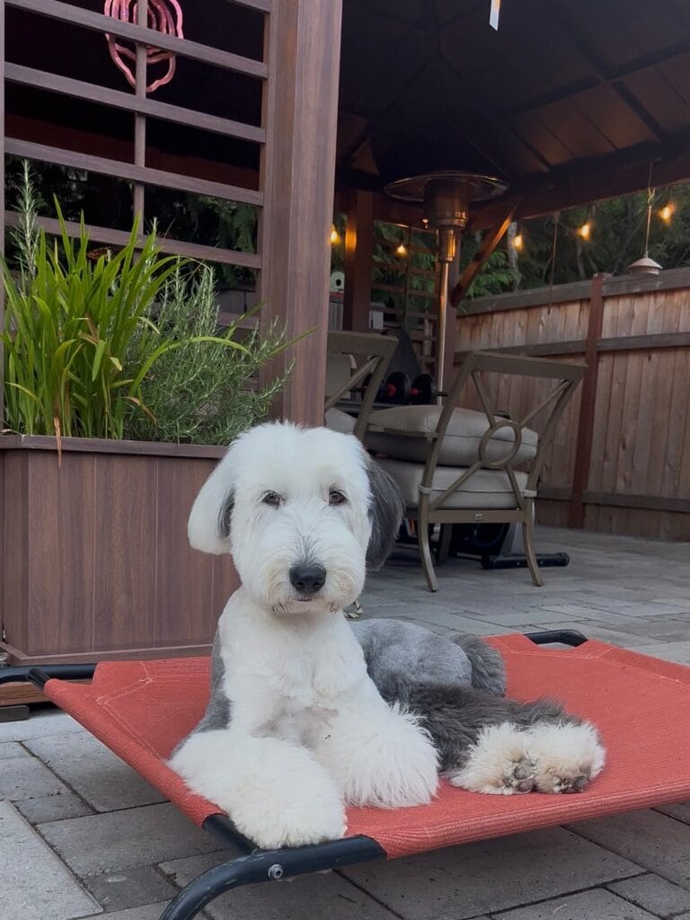 And here’s the layout trick: position the cot just outside the covered pergola overhang. Your dog gets shade AND airflow — she’ll pick that spot every single time over the grass.