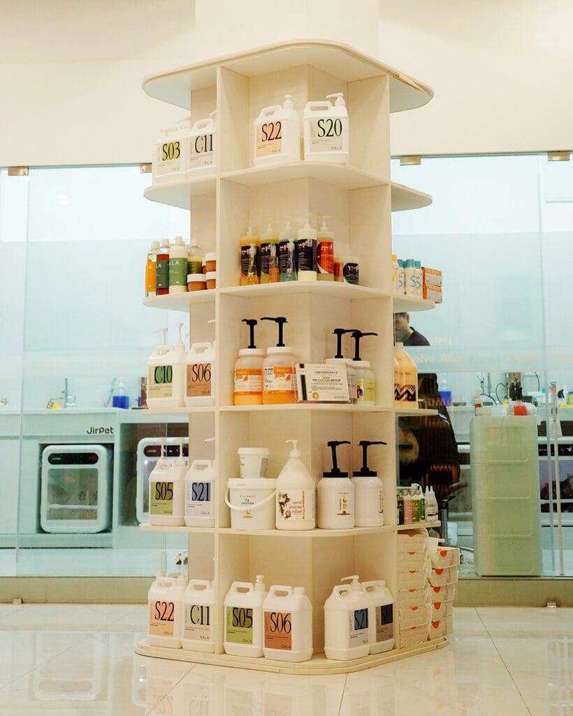 Label your products with printed alphanumeric codes on clean white tags. It sounds nerdy but it speeds up every single appointment because your staff grabs the right bottle immediately — no squinting at tiny labels mid-bath.