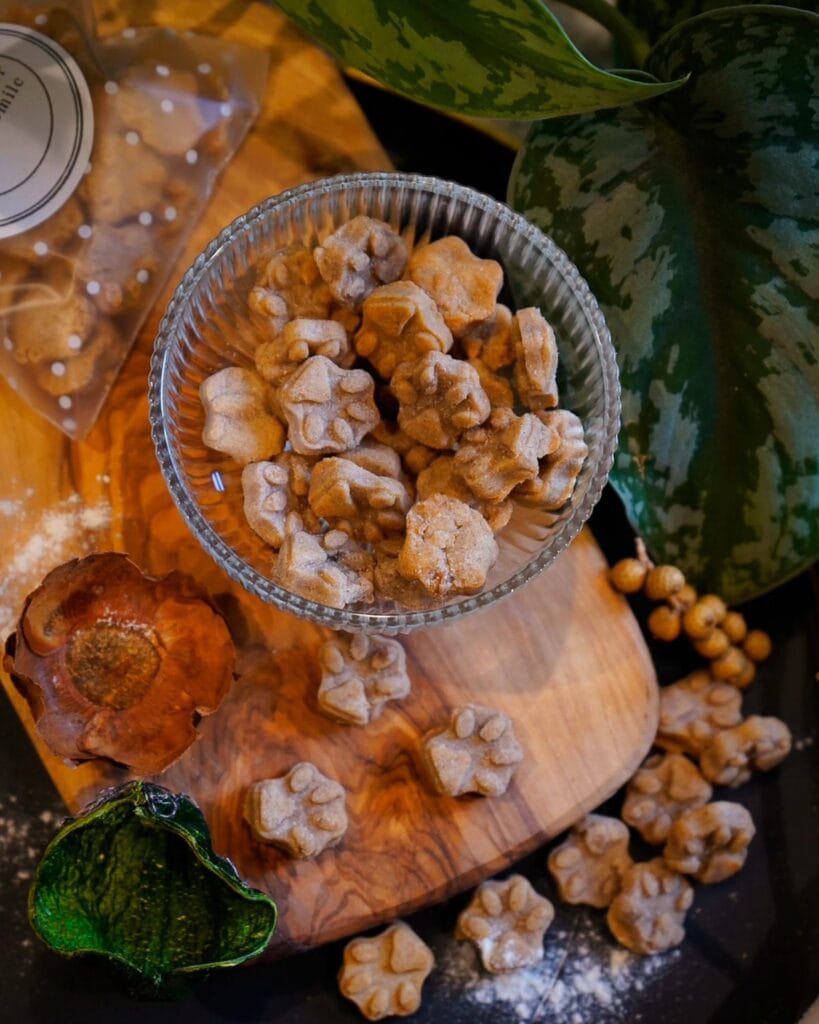 These little paw-shaped cookies are genuinely adorable, and they photograph so well in a ribbed glass bowl on a round olive wood board. Very Pinterest. Very you.
